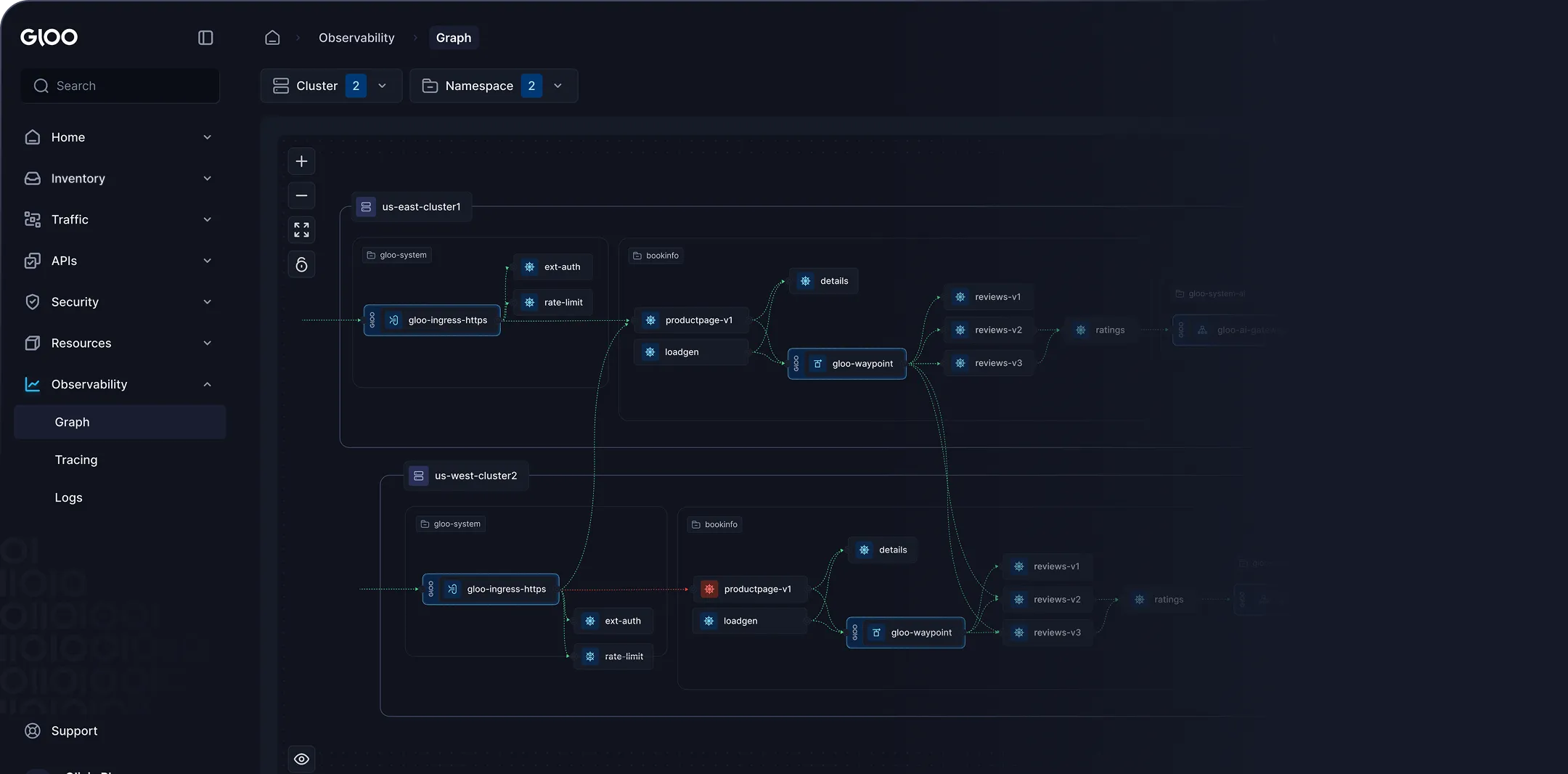 Built on market leading, open source technologies, Gloo unifies API and service connectivity across north-south, east-west, and egress network traffic to deliver omni-directional connectivity across cloud environments.
